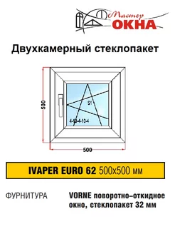Окно ПВХ 500х500 поворотно-откидное (50 * 50) см