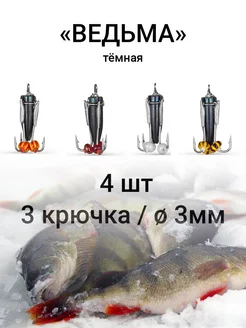Вольфрамовая мормышка «Ведьма» темная, 3 крючка, 4мм