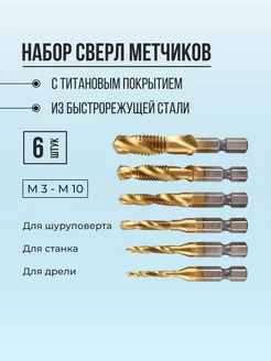 Набор сверл-метчиков с титановым покрытием 6 шт