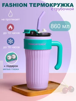 Кофейная термокружка для девушки с трубочкой и ситечком