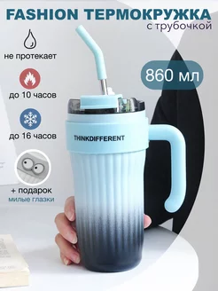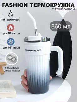 Термокружка для кофе и чая с трубочкой большая автомобильная