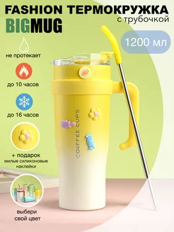 Термокружка желтая для горячих напитков с трубочкой 1200 мл