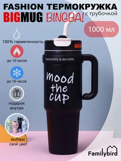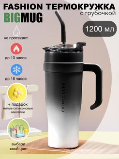 Черная термокружка с трубочкой автомобильная 1200 мл