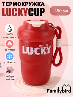 Красная термокружка для кофе с ситечком и трубочкой 450 мл