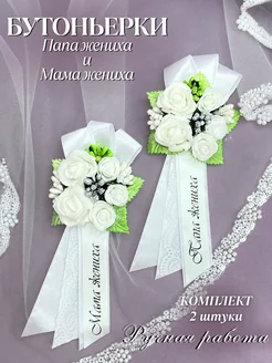 Свадебные бутоньерки "Папа жениха" и "Мама жениха"