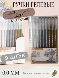 Ручки гелевые белые золото серебро набор 9шт 0,6 мм