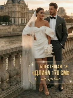 Длинная блестящая свадебная фата однослойная 170 см