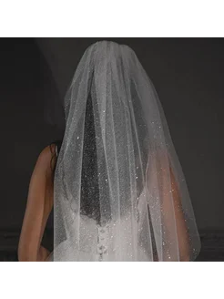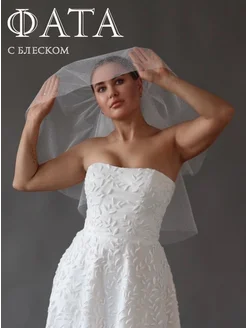 Короткая двухслойная фата с блеском 60 см