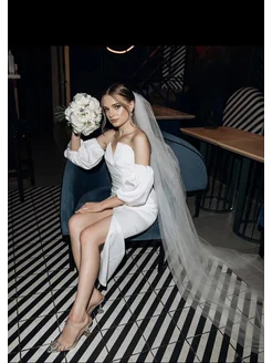 Длинная белая однослойная фата на гребне 150 см без блеска