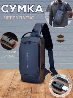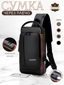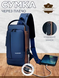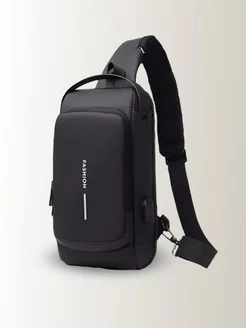 Сумка через плечо бананка нагрудная с USB портом для зарядки