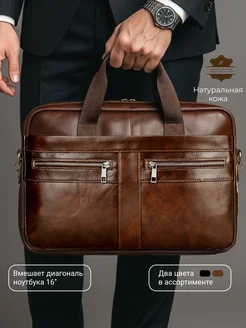 Сумка кожаная деловая для документов и ноутбука с ручками