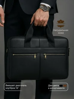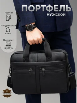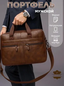 Портфель кожаный деловой для документов и ноутбука с ручками