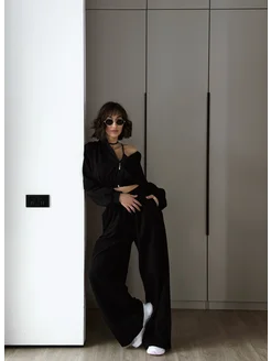 Костюм спортивный флисовый женский 2-в-1 оверсайз утеплённый