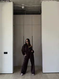 Костюм спортивный оверсайз на молнии с капюшоном, без начеса
