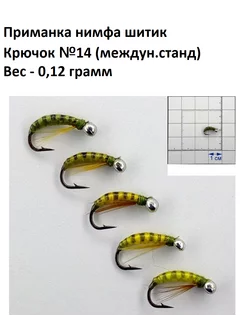 НАБОР 5 ШТУК - Приманка на хариуса Нимфа Шитик кр.№14