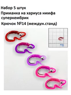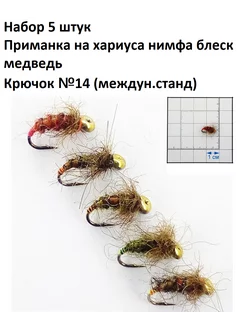 НАБОР 5 ШТУК Приманка на хариуса Нимфа Блеск медведь кр 14