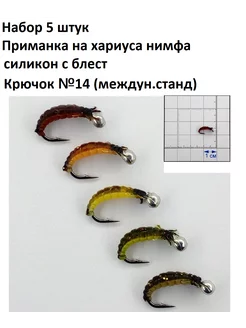 НАБОР 5 ШТУК Приманка на хариуса Нимфа Силикон с блест кр 14