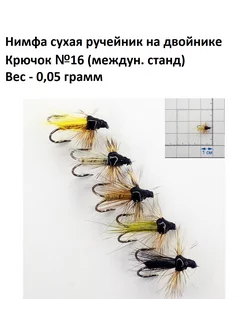 Набор 5 штук - Мушка нимфа сухая Ручейник на двойнике №16