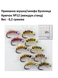 НАБОР 10 ШТУК Приманка Мушка Нимфа Бусеница кр. №12