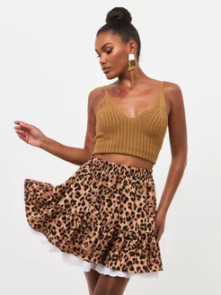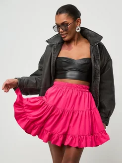 Юбка мини пудровая с воланами и подкладкой, летняя