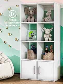 Деревянный стеллаж напольный для игрушек и книг с дверцами