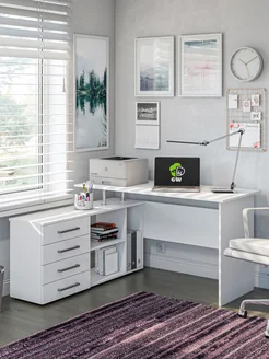 Стол письменный компьютерный с фрезеровкой ящиками и полками