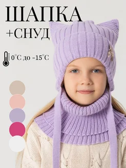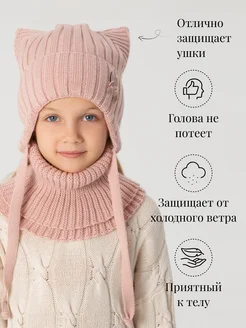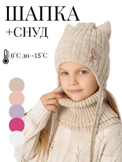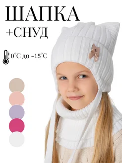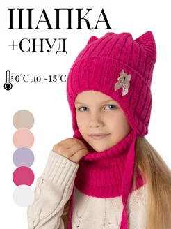 Теплая шапка со снудом для девочки