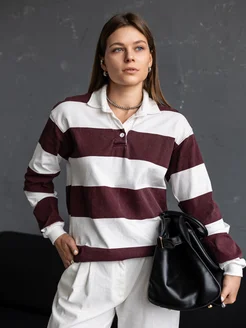 лонслив поло на пуговицах в полоску