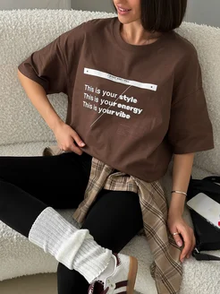 Футболка женская оверсайз коричневая больших размеров