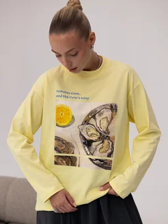 Лонгслив оверсайз лимонный с принтом