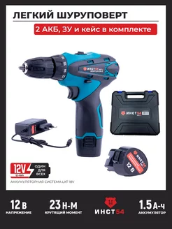 Аккумуляторная дрель-шуруповерт, 12В, 2 АКБ 1.5Ач, ЗУ, кейс