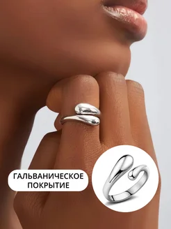 Кольцо крупное регулируемое бижутерия под серебро капля