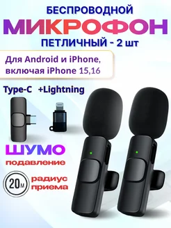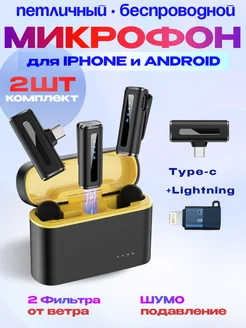 Микрофон петличный для Андроид и iPhone, беспроводной (2 шт)