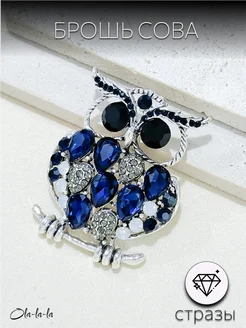 Брошь синяя сова