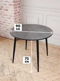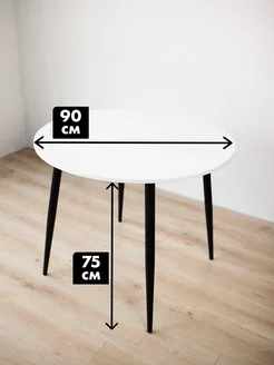 Стол кухонный обеденный круглый с черными ножками ЛДСП 90