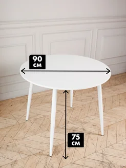 Стол кухонный обеденный круглый с белыми ножками ЛДСП 90