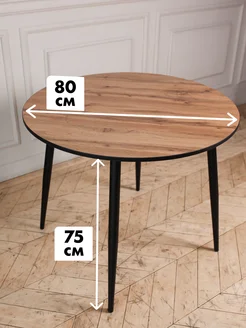 Стол кухонный обеденный круглый с черными ножками ЛДСП 80