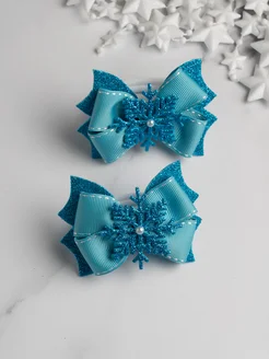 Бантики новогодние со снежинкой блестящие на резинке
