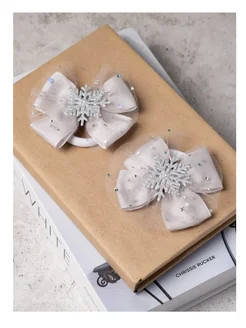 Бантики новогодние со снежинкой серые на резинке