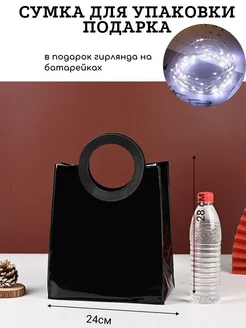 Пакет подарочный прозрачный черный, 24х28 см, круглые ручки