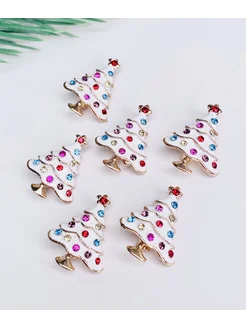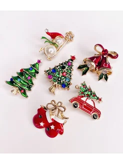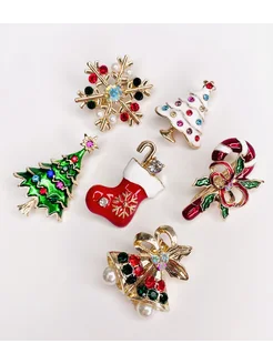 Комплект новогодних брошей снежинка, носок, елка, леденец