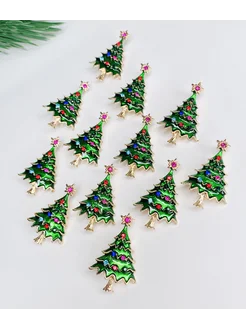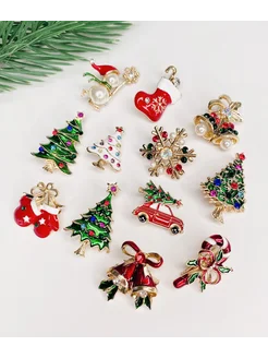 Комплект новогодних брошей колокольчики, елка, снежинка