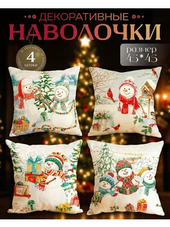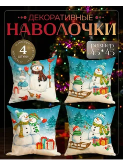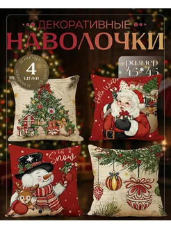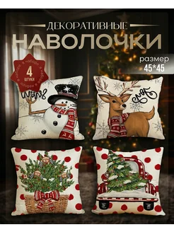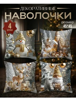 Новогодние наволочки декоративные 45х45 на молнии набор 4шт