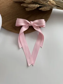 Атласный розовый бант для волос на заколке