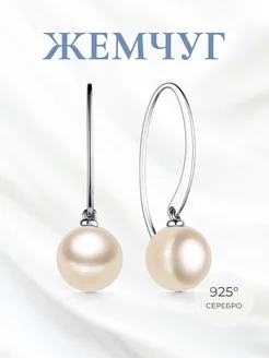 Серьги серебро 925 c 2 жемчугом длинные
