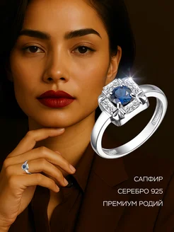 Кольцо серебро 925 c сапфиром и 4 фианитами
