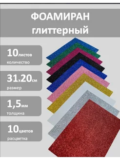 Фоамиран глиттерный набор с блестками для творчества 10 штук