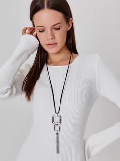 Украшение на шею длинное с подвеской на шнурке квадрат
