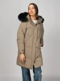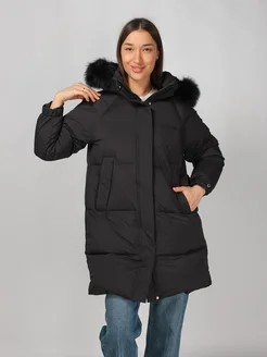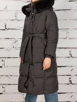 Фирменный пуховик зимний длинный с капюшоном MaxMara