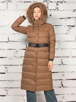 Фирменный пуховик зимний длинный с капюшоном Burberry
